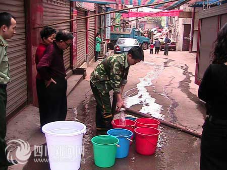 男女老少紛紛拿起大盆、小盆、水桶爭(zhēng)先恐后向消防車(chē)趕來(lái)!按蠹也灰獢D,按次序排隊(duì)”,當(dāng)消防官兵打開(kāi)出水閥門(mén),白花花的自來(lái)水流進(jìn)群眾拿著的大盆、小盆,水桶時(shí),群眾臉上頃刻洋溢著喜悅的微笑。