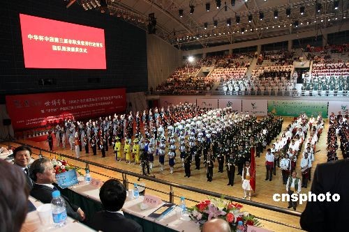 5月2日晚,在國(guó)內(nèi)外眾多管樂隊(duì)共同吹響的歡樂頌中,世博號(hào)角——2009上海之春國(guó)際音樂節(jié)管樂藝術(shù)節(jié)暨“中華杯”中國(guó)第三屆非職業(yè)優(yōu)秀行進(jìn)管樂團(tuán)展演圓滿閉幕。在藝術(shù)節(jié)期間還舉行了行進(jìn)管樂論壇,與會(huì)嘉賓就促進(jìn)全世界行進(jìn)管樂團(tuán)的發(fā)展舉行了會(huì)談。中新社發(fā) 黃寧 攝