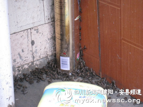 前日一早,家住綿陽安縣桑棗鎮(zhèn)香溪村4組的席興國打開家門,瞬間被眼前的景象嚇傻了:一眼望去,在視線所能及的范圍,地面上密密麻麻地聚集了小拇指般大小、黑壓壓一片小蟾蜍,要想出去根本沒法下腳。再一探頭,只見院子里、路上、鄰居房子周圍都被上百萬只蟾蜍包圍了。如此異,F(xiàn)象,村民擔心為地震前兆,相關(guān)部門正在進一步調(diào)查當中。