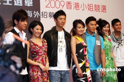 香港無線電視舉辦一年一度的香港小姐選舉及香港先生選舉即將召開,十六日,香港無線電視舉行記者會(huì),公布海外招募行動(dòng)全面展開。港男高鈞賢、港姐亞軍陳倩揚(yáng)等一眾香港先生及應(yīng)屆香港小姐出席活動(dòng)造勢宣傳。中新社發(fā) 洪少葵 攝