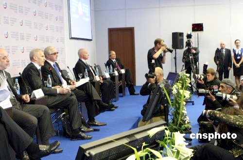 6月4日,“2009圣彼得堡國際經(jīng)濟(jì)論壇”召開,俄羅斯與美國就兩國關(guān)系“重啟”條件下,如何加強(qiáng)兩國經(jīng)濟(jì)領(lǐng)域合作、以及俄羅斯加入WTO等問題展開對(duì)話。俄羅斯工業(yè)與企業(yè)家聯(lián)合會(huì)主席紹欣與美國貿(mào)易代表柯克等眾多俄美工商企業(yè)界巨頭與會(huì)。 中新社發(fā) 田冰 攝
