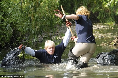 據(jù)英國《每日電訊報》6月4日報道,倫敦市長鮑里斯·約翰遜日前在視察一個環(huán)保項目時不慎跌入河中,所幸迅速被身旁的人們營救上岸。