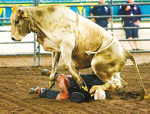 這位名叫布賴恩·尤班克斯的騎手已頭發(fā)花白,當日表演中他騎一頭公牛剛出場,還沒來得及向觀眾揮手致意就被牛掀翻在地。這頭牛四蹄凌空飛起腳踹向布賴恩的頭部和軀干,一時驚慌失措的布賴恩趕緊用雙手保護住頭部,看臺上的觀眾更是陷入恐慌。一旁的工作人員和其他騎手見狀,趕忙跑過來驅趕公牛。令人不可思議的是,布賴恩竟然還掙扎著站了起來,被前來幫他的人帶離競技場。經醫(yī)生檢查,布賴恩只是輕微擦傷和局部皮膚發(fā)腫,并無大礙。