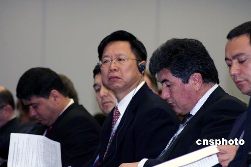 六月五日,上海合作組織經(jīng)濟(jì)會(huì)議在第十三屆圣彼得堡國際經(jīng)濟(jì)論壇框架下舉行,主要討論區(qū)域合作與經(jīng)濟(jì)穩(wěn)定增長,上合成員國投資合作發(fā)展道路,金融保險(xiǎn)機(jī)制等議題。中國貿(mào)促會(huì)副會(huì)長、上合組織實(shí)業(yè)家委員會(huì)中方主席于平(中)率領(lǐng)中國實(shí)業(yè)家代表團(tuán)出席會(huì)議并發(fā)言。中新社發(fā) 田冰 攝