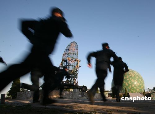 6月10日,北航某雷達(dá)旅太平山雷達(dá)站官兵正在開(kāi)展訓(xùn)練。2009年是北航某雷達(dá)旅按新大綱施訓(xùn)的第一年,他們采取多媒體示范教學(xué)、專(zhuān)家授課、交叉培訓(xùn)、因人施教等方式,使全體官兵在較短時(shí)間內(nèi)熟悉新大綱訓(xùn)練內(nèi)容,日上報(bào)空情及數(shù)據(jù)準(zhǔn)確率達(dá)100%。 中新社發(fā) 汪漢宗 攝