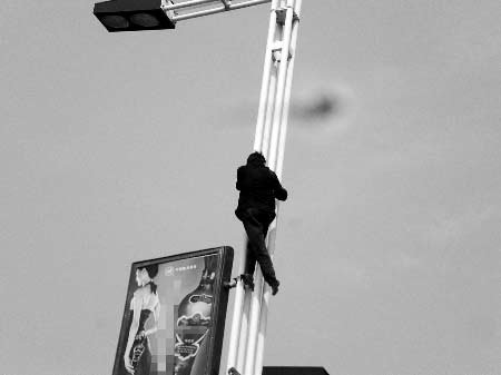 5月16日14時45分,許昌市(河南)消防支隊禹州大隊接到報警,位于禹州市濱河路東段歐蔓咖啡廳對面一路燈桿上有人要自殺。消防官兵趕到現場發(fā)現,一名約40歲左右,操外地口音的男子在路燈桿頂部,一會兒躺在路燈桿頂部的燈罩架上做出睡覺姿勢,一會兒抓住燈罩架蕩起“秋千”。