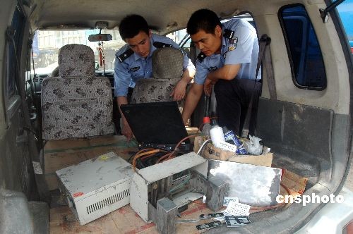 6月1日,山東省郯城縣警方接群眾舉報(bào),在褚墩鎮(zhèn)一家車(chē)輛修理廠內(nèi)破獲一起克隆“車(chē)輛戶(hù)口”案件。據(jù)辦案民警介紹,犯罪嫌疑人流動(dòng)作案,打擊難度很大。如果車(chē)輛被克隆或更改了戶(hù)口,使“黑車(chē)”披上“合法”的銷(xiāo)臟外衣,將給國(guó)家或個(gè)人造成巨大經(jīng)濟(jì)損失。目前,此案正在進(jìn)一步審理中。 中新社發(fā) 房德華 攝