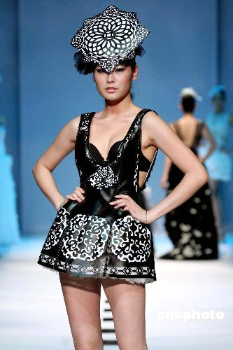 6月3日晚,“廣州國(guó)際輕紡城”2009廣東大學(xué)生優(yōu)秀服裝設(shè)計(jì)大賽總決賽暨指定面料團(tuán)體創(chuàng)意設(shè)計(jì)大賽在廣州國(guó)際輕紡城舉行。經(jīng)過“51進(jìn)25”篩選出來的17所院校的精英作品爭(zhēng)奪金、銀、銅獎(jiǎng)和最佳工藝制作獎(jiǎng)、最佳創(chuàng)意獎(jiǎng)、最佳面料獎(jiǎng)以及優(yōu)秀獎(jiǎng)。 中新社發(fā) 劉衛(wèi)勇 攝