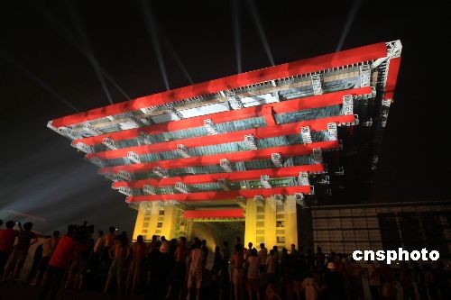 6月22日晚,素有“東方之冠”之稱的上海世博會中國館舉行亮燈儀式,在黃浦江畔初綻美麗光芒。中國館正式亮燈是世博會園區(qū)電力建設(shè)中一個重要里程碑,標志著世博各項供電工程已全面進入沖刺階段。據(jù)悉,今日投運的中國館三十五千伏變電站總?cè)萘繛橐稽c六萬千伏安,投運后將直接為兩萬平方米的中國國家館、三萬平方米的中國地區(qū)館以及三千平方米的港澳臺館提供安全、穩(wěn)定的電力。中新社發(fā) 湯彥俊 攝