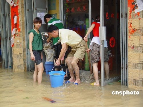 受熱帶風(fēng)暴“蓮花”影響,福建省詔安梅洲鄉(xiāng)下起特大暴雨。據(jù)該縣氣象局測(cè)報(bào), 從6月22日凌晨0點(diǎn)至早上8點(diǎn),8小時(shí)降雨量達(dá)到273毫米。這場(chǎng)暴雨使梅洲鄉(xiāng)遭受罕見(jiàn)水災(zāi),1580多戶民眾家中進(jìn)水,最高進(jìn)水位達(dá)3米多高,上萬(wàn)民眾受災(zāi),近兩千名民眾安全轉(zhuǎn)移。22日中午,雨水停后,水位已開(kāi)始快速回落。中新社發(fā) 沈麗煌 攝