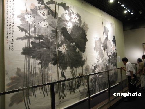7月3日,《南張北溥——臺北歷史博物館藏張大千、溥心畬書畫作品展》在遼寧省博物館揭幕。這是臺北歷史博物館首次以“南張北溥”為視角在大陸舉辦的展覽。該展覽由遼寧省博物館、臺北歷史博物館、中華海峽兩岸文化資產交流促進會共同主辦,展期1個月,展覽共遴選出臺北歷史博物館所典藏張大千、溥心畬作品及部分臺灣收藏家藏品合計140件(組),內容涵括二位大師于山水、人物、花卉及書法等多種題材的作品。中新社發(fā) 沈殿成 攝