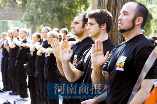 禪宗祖庭少林寺來“洋弟子”已經(jīng)不是什么稀罕事。早在1997年,美國(guó)少林拳法就已經(jīng)歸宗認(rèn)祖,并于2006年組織了河南歷史上最大規(guī)模的一次朝拜——500人歸山少林。
