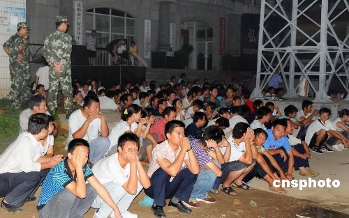 7月11日凌晨4時20分,廣西北海市再次展開打擊非法傳銷集中清查行動,截止當天中午12時,執(zhí)法部門共清查非法傳銷聚集場所57個,抓獲涉嫌非法傳銷人員840余人。其中100余人被帶回進行審查,刑拘5人,行政拘留3人,其余涉嫌非法傳銷人員均作遣返原籍處理。此外,執(zhí)法部門還暫扣12萬元涉案人民幣、3輛汽車、7臺電腦及一批非法傳銷資料。目前,北海警方正對相關(guān)人員進行審查,對涉嫌違法犯罪人員將依法處理。中新社發(fā) 蘇程遠 攝