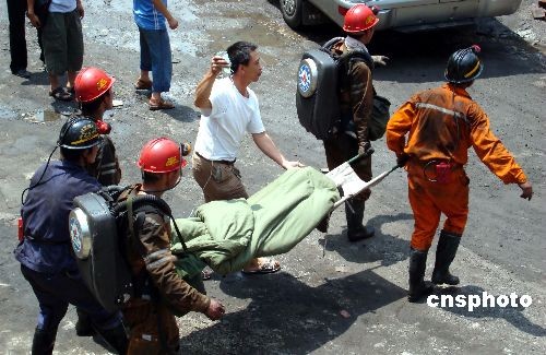 貴州晴隆新橋煤礦“6.17”透水事故在全體搶險救援人員的艱苦努力、日夜奮戰(zhàn)下,歷經(jīng)25天、604小時的搶險救援,取得突破性進(jìn)展,2009年7月12日12時,在礦井上山巷與平巷交叉處成功營救出王圈杰、王礦偉、趙衛(wèi)星3名被困礦工,他們均為河南汝陽人,營救出井時,意識較清醒,三人創(chuàng)造了604小時的生命奇跡,在場的全體搶險救援人員都為他們頑強(qiáng)的生命所感動。目前,救援指揮部醫(yī)護(hù)人員正在對他們進(jìn)行身體檢查,并采取相應(yīng)的醫(yī)療措施對他們進(jìn)行醫(yī)療救護(hù),據(jù)觀察,生命體征基本平穩(wěn)。同時,搶險救援人員正在井下緊急搜救其他被困礦工。中新社發(fā) 彭年 攝