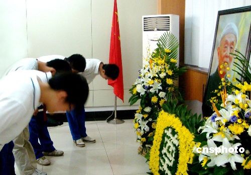 七月十四日上午,季羨林先生的母校山東省濟(jì)南第一中學(xué)(前身為濟(jì)南正誼中學(xué)、省立高中)舉行了悼念哀思儀式,師生們一起緬懷大師生前對母校的嘉言懿行。二零零一年十月,山東大學(xué)百年校慶,季羨林先生應(yīng)邀出席校慶系列活動(dòng)。當(dāng)時(shí),已是九十高齡的季羨林先生說,無論如何我要回母校濟(jì)南一中看一看。在這最后一次回母校中,季羨林先生與校友歐陽中石、董鳳基共同捐資五十萬元人民幣,設(shè)立了“春暉獎(jiǎng)學(xué)金”,以褒獎(jiǎng)學(xué)習(xí)成績優(yōu)異的學(xué)生。中新社發(fā) 牛杰峰 攝