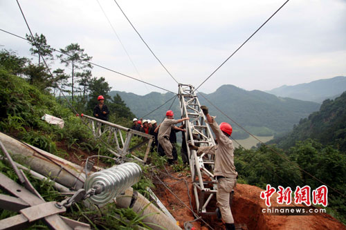 災(zāi)情就是命令,有著“福建電力鐵軍”光榮稱號的福建省第二電力建設(shè)公司快速啟動應(yīng)急預(yù)案,迅速組織160名搶險(xiǎn)隊(duì)員連夜集結(jié)到搶險(xiǎn)現(xiàn)場,搶險(xiǎn)物資、設(shè)備、器材、車輛陸續(xù)到達(dá)。在搶險(xiǎn)隊(duì)員頑強(qiáng)拼搏下,用帶電跨越架改造的應(yīng)急鐵塔,替代倒塌的水泥桿塔,完成搶修任務(wù)并送電成功,確保了鷹廈電氣化鐵路荊西牽引變的用電安全。