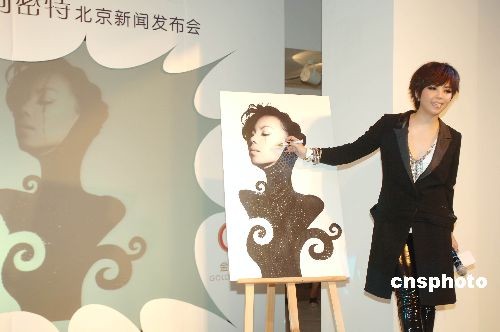 7月9日,闊別3年的張惠妹現(xiàn)身北京,攜新專輯《阿密特》與媒體見面。阿妹的新專輯策劃非常有創(chuàng)意,阿密特(A-MIT)是張惠妹的卑南族名字。阿妹還以專輯中第一首開場曲《分生》現(xiàn)場說法:“從‘張惠妹’這個音樂品牌里面分生,生出了另一個音樂品牌,《分生》就是這個意思,從張惠妹中分生出了完全獨立的一個阿密特,一個只為歌唱而活,只為音樂而生的歌手。”整張專輯音樂充滿實驗性,金曲制作人“阿弟仔”與阿妹共同操刀制作,整張專輯彌漫著BANDSOUND氛圍。創(chuàng)作陣容包括蘇打綠的青峰、創(chuàng)作人小安、名作詞人林夕、姚若龍、陳鎮(zhèn)川。更特別的是,專輯還收錄了張媽媽的作品,以及臺語歌曲和原住民的傳統(tǒng)古調(diào)。圖為張惠妹為新專輯造型畫上金色裂痕,象征阿密特破繭而出。中新社發(fā) 李學(xué)仕 攝