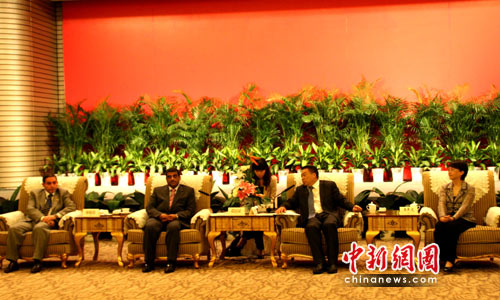 6月25日晚,中共中央對外聯(lián)絡部副部長李進軍(右二)、中共揚州市委書記王燕文(右一)在揚州迎賓館會見參加26日由中共中央對外聯(lián)絡部與中共揚州市委、揚州市人民政府共同主辦的中國與海灣阿拉伯國家石化產(chǎn)業(yè)合作論壇的海合會六成員國阿拉伯聯(lián)合酋長國、阿曼、巴林、卡塔爾、科威特和沙特阿拉伯的駐華大使或臨時代辦,以及全球最大的石油公司沙特阿美公司、沙特基礎工業(yè)公司、沙特扎米爾集團公司、阿聯(lián)酋國家石油公司、阿聯(lián)酋博祿石化公司、卡塔爾天然氣公司等多家海灣阿拉伯國家石化企業(yè)高層領導。圖左二為阿曼蘇丹國駐華大使阿卜杜拉·薩阿迪,左一為阿聯(lián)酋駐華大使歐麥爾·白伊塔爾。