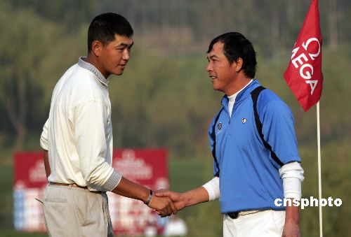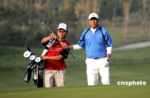 10月21日,歐米茄高爾夫球錦標(biāo)賽北京站比賽收桿,老將張連偉四輪比賽后,以總成績(jī)283桿、低于標(biāo)準(zhǔn)桿5桿的成績(jī)奪得冠軍。中新社發(fā) 張宇 攝
