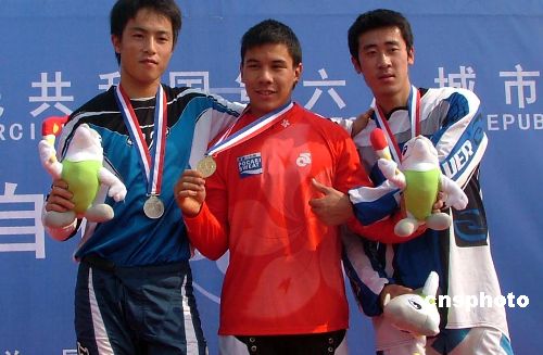 十月二十二日上午,第六屆全國(guó)城運(yùn)會(huì)BMX(小輪車)男子越野賽在洛陽賽區(qū)舉行,運(yùn)動(dòng)員們經(jīng)過幾個(gè)回合的預(yù)賽較量后進(jìn)入決賽,香港運(yùn)動(dòng)員王史提芬率先奪得男子冠軍,煙臺(tái)市的孫越、大同市的任超分列二、三名。中新社發(fā) 史寶銀 攝