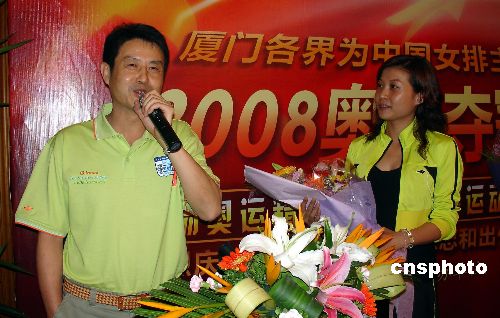 十月二十八日晚,在廈門各界“為中國女排主教練陳忠和二○○八奧運(yùn)奪冠加油”酒會上,陳忠和表示,明年奧運(yùn)會中國女排奪冠征途面臨六、七支勁敵,中國女排將迎難而上,奮力奪冠。中新社發(fā) 楊伏山 攝