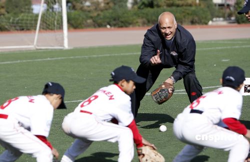10月31,入選棒球名人堂的前美國職業(yè)棒球運動員卡爾·瑞普金在北京大成學校教學生打棒球。這是他以美國國務院派遣的美國公共外交特使的身份進行的首次出訪。瑞普金將訪問北京、上海和廣州,在這三個城市中,瑞普金將與青少年進行接觸,相互進行文化交流,同時為更多的新手講解棒球運動。卡爾·瑞普金是棒球運動有史以來空前的鐵人紀錄保持者,也是美國棒球名人堂成員之一。他是棒球史上僅有的取得400次本壘打和擊中3000次的八位知名球員之一。2007年7月29日,他以史上最高得票數(shù)入選美國棒球名人堂。中新社發(fā) 杜洋 攝