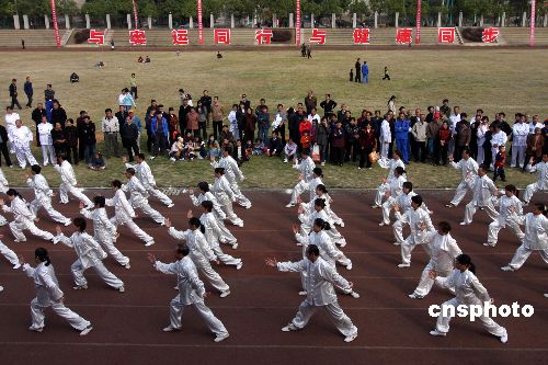 11月2日,湖南漣鋼離退休老職工參加千人太極拳表演。據(jù)悉,該集團(tuán)為宣傳奧運(yùn)會精神,開展“與奧運(yùn)同行,與健康同行”千人太極拳表演活動(dòng)。中新社發(fā) 郭國權(quán) 攝