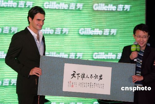 11月9日,“網(wǎng)壇天王”費(fèi)德勒在上海出席一家品牌主辦的球迷見面活動(dòng),并在現(xiàn)場(chǎng)主持為數(shù)一千人的剃須成人禮儀式。中新社發(fā) 湯彥俊 攝