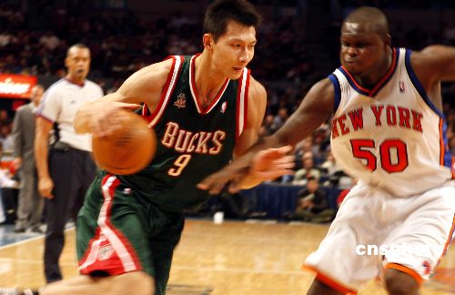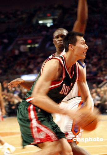 當(dāng)?shù)貢r間十一月三十日,中國球員易建聯(lián)隨其所在的密爾沃基雄鹿隊作客紐約麥迪遜花園廣場。在48分鐘比賽中領(lǐng)先了42分鐘,之后不僅把17分的領(lǐng)先優(yōu)勢喪失殆盡,而且最后兩分鐘讓尼克斯隊以91:88實現(xiàn)大翻盤。易建聯(lián)首發(fā)打了29分鐘入賬8分,其中陣地進攻7投3中,罰球2罰2中。中新社發(fā) 李靜 攝