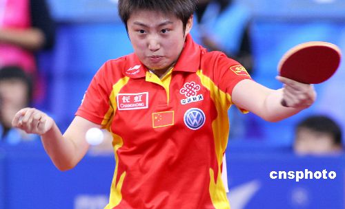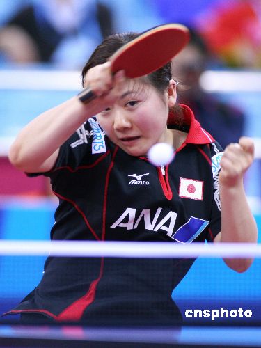 12月14日,2007年國(guó)際乒聯(lián)職業(yè)巡回賽總決賽女單首輪,頭號(hào)種子郭躍在先失一局的情況下連扳4局淘汰日本選手福原愛(ài),昂首晉級(jí)八強(qiáng)。中新社發(fā) 富田 攝
