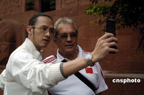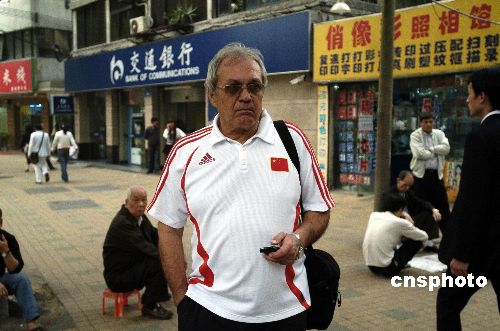 2007年12月17日下午,中國(guó)國(guó)奧隊(duì)主教練杜伊利用閑暇時(shí)光在廣州逛街,途中被球迷認(rèn)出與其合影。中新社發(fā) 吳峻 攝