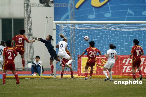 2007年12月19日下午,中國女足在廣州黃埔體育中心體育場與新西蘭女足熱身賽中以4比0大勝。中新社發(fā) 吳峻 攝