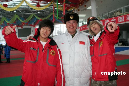 1月23日下午,全國(guó)冬運(yùn)會(huì)單板滑雪(男子U型場(chǎng)地個(gè)人自選動(dòng)作)項(xiàng)目在哈爾濱亞布力U型場(chǎng)地進(jìn)行了頒獎(jiǎng)儀式。冠軍由中國(guó)人民解放軍隊(duì)的曾小燁獲得,二三名分別是哈爾濱隊(duì)的史萬成、中國(guó)人民解放軍隊(duì)的黃世英。中新社發(fā) 姚庭山 攝