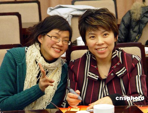 1月30日,奧運冠軍鄧亞萍、葉喬波出席一項以“攜手海峽·走近奧運”為主題的臺灣大學(xué)生冬令營閉營式。鄧亞萍在北京奧運賀年卡上為臺灣大學(xué)生簽名留念。兩位知名運動員當(dāng)天與臺灣同學(xué)們討論奧運場館建設(shè),力薦北京各類特色建筑。中新社發(fā) 劉舒凌 攝