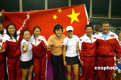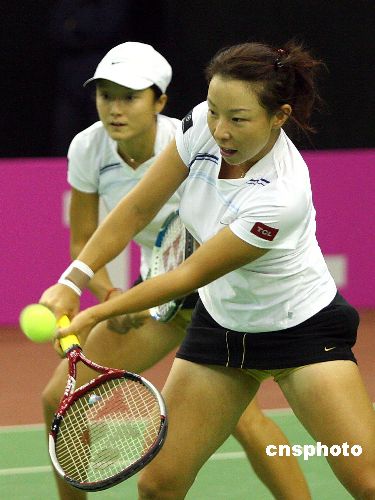 2月3日,2008聯合會杯世界一組第一輪進入第二日爭奪。在北京國際網球中心,中國隊迎戰(zhàn)前冠軍法國隊。黃金組合鄭潔/晏紫直落兩盤以7-5/7-6(5)擊敗德切/拉扎諾,從而助中國隊以3-2擊敗法國隊,進而改寫了中國隊參加聯合會杯27年歷史以來的最佳戰(zhàn)績——首次闖入4強。中新社發(fā) 富田 攝