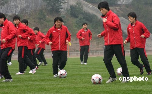 2月16日下午,朝鮮女足在永川備戰(zhàn)四國賽。當(dāng)日,朝鮮女足主教練金光明帶領(lǐng)21名弟子出現(xiàn)在重慶財經(jīng)職業(yè)學(xué)院足球訓(xùn)練場進(jìn)行首場集訓(xùn)。據(jù)了解,奪冠呼聲高的朝鮮女足15日晚7時多抵達(dá)下塌的永川名豪國際酒店,她們是最后一支抵達(dá)永川的球隊。2008東亞女足錦標(biāo)賽決賽將于2月18日在永川體育中心開賽。中新社發(fā) 陳仕川 攝