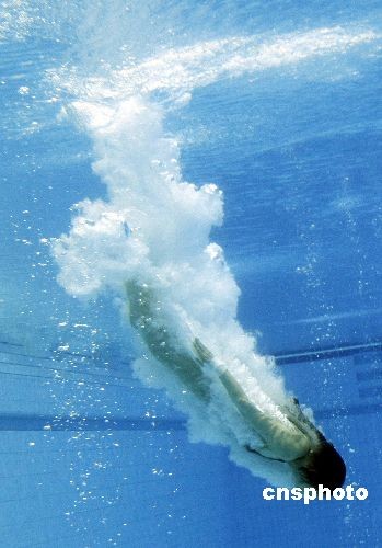 郭晶晶女子3米板半決賽入水瞬間。中新社發(fā) 杜洋 攝