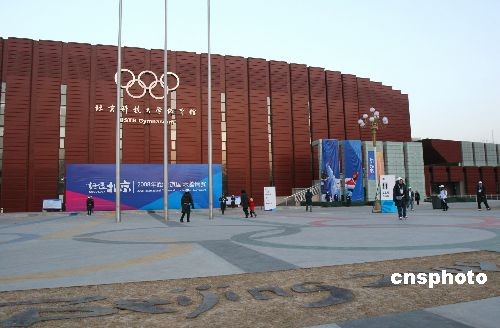 2月26日,“好運(yùn)北京”2008跆拳道國(guó)際邀請(qǐng)賽在北京科技大學(xué)開幕,本次比賽共有來(lái)自27個(gè)國(guó)家和地區(qū)的運(yùn)動(dòng)隊(duì)報(bào)名參賽。圖為北京科技大學(xué)體育館,該場(chǎng)館將承擔(dān)奧運(yùn)會(huì)柔道、跆拳道和殘奧會(huì)輪椅籃球、輪椅橄欖球四個(gè)項(xiàng)目的比賽。中新社發(fā) 富田 攝
