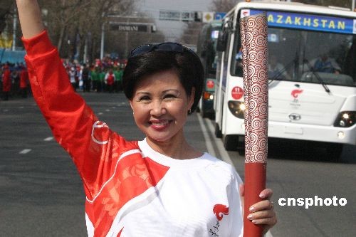 圖:哈薩克斯坦著名歌星羅斯參加火炬接力