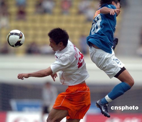 2008年4月6日下午,新賽季中超進(jìn)入第二輪角逐。被譽(yù)為廣東“德比”的深圳上清飲隊(duì)在主場(chǎng)深圳體育場(chǎng)迎戰(zhàn)本賽季的升班馬廣藥中一隊(duì)。經(jīng)過90分鐘鏖戰(zhàn)雙方以1比1握手言和。中新社發(fā) 吳峻 攝