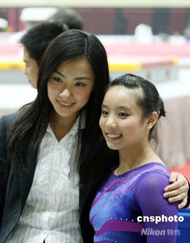 5月7日,奧運冠軍劉璇與小運動員親切交流并合影留念。當日,2008全國體操錦標賽暨奧運選拔賽在天津舉行,以裁判身份亮相賽場的劉璇備受關(guān)注。中新社發(fā) 郭曉帆 攝