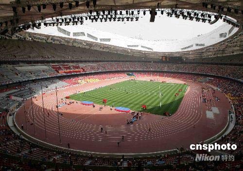 5月22日,“好運(yùn)北京”2008中國田徑公開賽在國家體育場(chǎng)“鳥巢”拉開帷幕。這是中國在全國哀悼日結(jié)束后舉辦的首項(xiàng)重大賽事,也是鳥巢首次全面開放進(jìn)行奧運(yùn)場(chǎng)館測(cè)試賽。中新社發(fā) 富田 攝