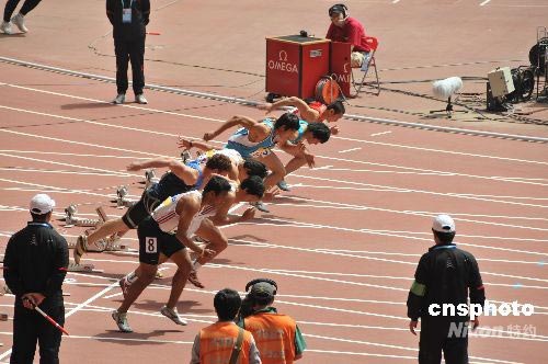 “好運(yùn)北京”2008年全國田徑錦標(biāo)賽暨中國田徑公開賽,自5月22日至25日在國家體育場“鳥巢”舉行,22日上午九點(diǎn)比賽開始前,全體觀眾、運(yùn)動員、工作人員起立,向四川地震遇難同胞默哀;今天上午進(jìn)行的項(xiàng)目有:女子七項(xiàng)全能100米欄、男子F/55/56/57/58標(biāo)槍決賽、女子100米欄預(yù)賽 、男子跳遠(yuǎn)及格賽A/B、 男子1500米預(yù)賽 、女子七項(xiàng)全能跳高A/B 、男子鉛球及格賽 A/B、 女子1500米預(yù)賽、 男子400米預(yù)賽、女子400米預(yù)賽等。中新社發(fā) 馮軍(北京) 攝