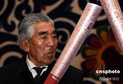 6月20日,北京奧運圣火接力活動在西藏拉薩舉行前夕,75歲的藏族“登山英雄”貢布成為首棒火炬手。1958年,時為解放軍戰(zhàn)士的貢布被借調(diào)到國家登山隊,開始與登山運動結(jié)下不解之緣。1960年5月25日,他與王富洲、屈銀華一起登上世界第一峰——珠穆朗瑪峰,實現(xiàn)人類首次從北坡登上珠峰的愿望,開創(chuàng)中國登山運動的新紀(jì)元。 中新社發(fā) 廖攀 攝