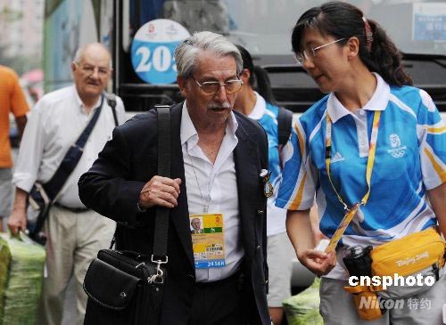 七月二十七日,青島奧運村舉行開村升旗儀式,各國帆船運動代表團的運動員紛紛入住青島奧運村,進入奧帆賽最后實戰(zhàn)準(zhǔn)備階段。圖為中國志愿者在與外國帆船教練進行交流提供幫助。中新社發(fā) 曲連遵 攝