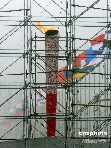 7月28日,青島奧帆中心準(zhǔn)備在北京奧運(yùn)會(huì)期間點(diǎn)燃的火炬提前試點(diǎn)燃。據(jù)工作人員介紹這是調(diào)試火焰的大小和空氣濃度,以獲取最佳效果。 中新社發(fā) 羅波 攝