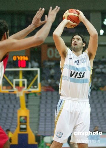 7月29日,2008男籃鉆石杯的揭幕戰(zhàn)中,阿根廷以81比71戰(zhàn)勝了07年亞錦賽冠軍伊朗,取得了他們?cè)诒緦帽荣惿系拈_門紅。中新社發(fā) 吳俊yz 攝