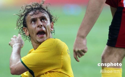 8月7日,北京奧運(yùn)沈陽足球分賽場(chǎng)舉行男足預(yù)賽,巴西隊(duì)1:0勝比利時(shí)隊(duì)。圖為巴西球員RAFINHA怒對(duì)比利時(shí)犯規(guī)球員。中新社發(fā) 張宇 攝