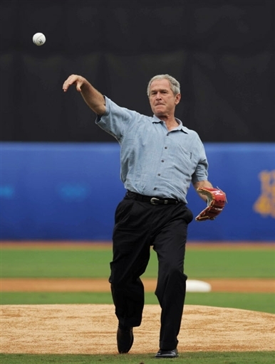 8月11日,美國(guó)總統(tǒng)布什現(xiàn)身五棵松棒球場(chǎng),親自上陣秀球技,并與美國(guó)棒球隊(duì)運(yùn)動(dòng)員交談并合影留念。從8月8日,布什相繼來(lái)到“鳥(niǎo)巢”觀看奧運(yùn)開(kāi)幕式,“水立方”觀看游泳比賽,五棵松籃球館觀看籃球比賽,可稱(chēng)得上是美國(guó)最大牌的超級(jí)體育迷。