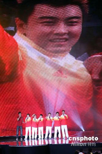 九月一日晚,在澳門訪問的北京奧運(yùn)金牌選手代表團(tuán)出席澳門特區(qū)政府舉辦的大型聯(lián)歡會,。中新社發(fā) 洪少葵 攝